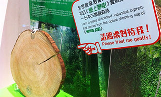 來自該森林的日本檜木樹盤(FSC 100%標籤)亦會在戲院展出。FSC標籤代表該產品源自負責任經營的林業,既能滿足當代人的社會、生態、經濟的需求,後代享用林業的權利亦不會因此折損。按此了解FSC星期五